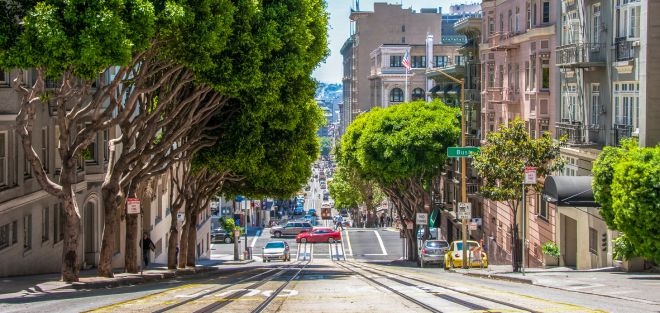 San Francisco : une rue qui plonge indéfiniment vers la baie, brouillard qui dérive sous les câbles du Golden Gate Bridge, l'architecture victorienne des quartiers résidentiels, ou des panoramas exceptionnels.