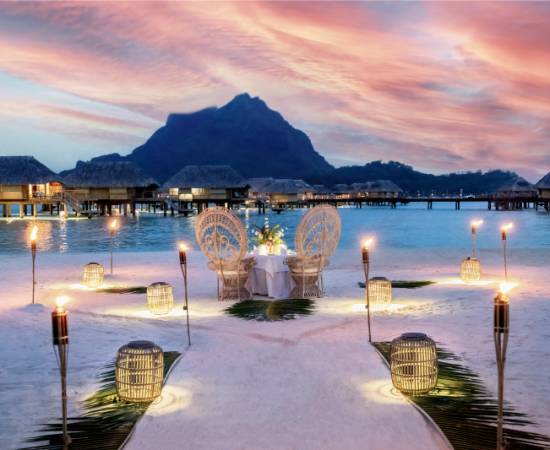 A deux, admirez la splendeur d’un coucher de soleil en glissant sur le lagon à bord d’un splendide catamaran. Découvrez le plaisir d’un petit-déjeuner acheminé à bord d’une pirogue jusqu’à la terrasse de votre bungalow sur pilotis. Savourez les délices exotiques et romantiques d’un dîner aux chandelles, en tête-à tête sous les étoiles.